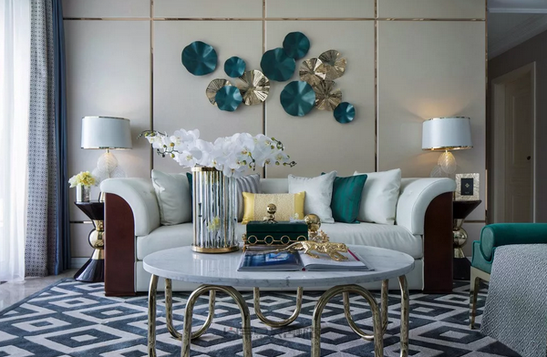 對(duì)于大戶型來說,更少的考慮面積,更多的考慮設(shè)計(jì)感,那么這兩面焦點(diǎn)墻的設(shè)計(jì),就相當(dāng)于室內(nèi)設(shè)計(jì)風(fēng)格的濃縮。新古典和新中式風(fēng)格的背景墻運(yùn)用到客廳,可保持風(fēng)格統(tǒng)一,時(shí)尚大氣有檔次。
