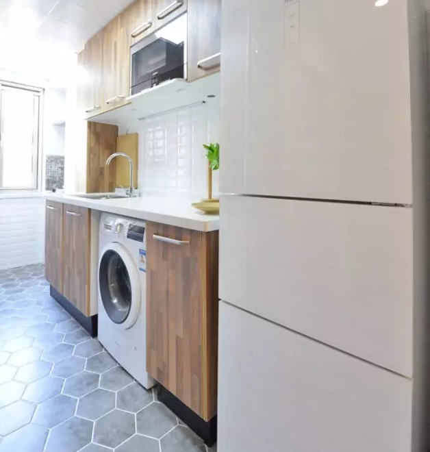 如果你家有兩個(gè)廚房或者喜歡吃較西式食物,洗衣機(jī)放廚房也是個(gè)不錯(cuò)的選擇。