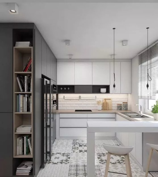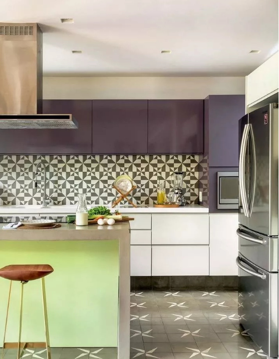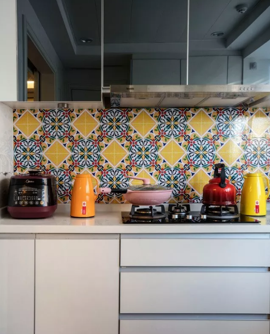 廚房的墻面一般比較單調(diào),實(shí)用性遠(yuǎn)遠(yuǎn)勝過了裝飾性,因而沒有太大的亮點(diǎn)。如果用花磚進(jìn)行裝飾,和其他單色磚形成一個視覺上的對比,或許就能輕松打造視覺焦點(diǎn)了。