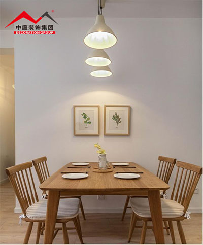 原木的家具給人很溫馨淡雅的感覺。整潔的乳膠漆沙發(fā)墻,掛上2幅簡單的裝飾畫,顯得精致又優(yōu)雅舒適;