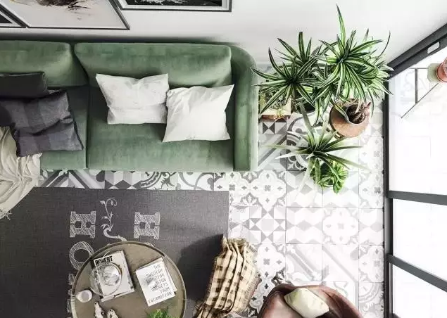 綠色與白色的空間開闊明朗,搭配黑白色手工花磚以及各種地毯織物,豐富了家的層次感。家具風(fēng)格以斯堪的納維亞風(fēng)為主,低矮啊的家具很好的平衡了視覺感,白色墻面上用了一些攝影作品和畫作點(diǎn)綴,避免了單調(diào)性。北歐風(fēng)格的簡約恰到好處的與這個(gè)清新的環(huán)境相融合。
