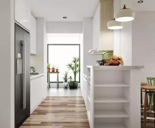 廚房以白色為主,將一部分的空間留白,平衡了整體效果?,F(xiàn)代化的廚房不僅擁有高顏值,更加突出功能性與存儲性。