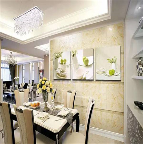 餐廳是進(jìn)餐場(chǎng)所,餐廳應(yīng)營造出一種能夠增進(jìn)食欲、熱情好客的畫面氛圍,給人新鮮清爽的就餐感覺。因此可以選擇一些果蔬、插花、靜物、自然風(fēng)光等題材的掛畫;如有吧臺(tái),可掛一些對(duì)應(yīng)酒杯洋酒的現(xiàn)代油畫。