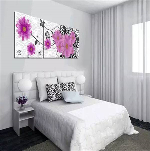 臥室是個(gè)人生活的私密空間,也是休息睡眠場(chǎng)所。臥室要營造溫馨浪漫、舒適恬靜的氛圍,掛畫以暖色為主色調(diào)??梢赃x擇人物人體、花卉等題材掛畫,當(dāng)然也可以掛自己的肖像畫或結(jié)婚照,以增進(jìn)感情。