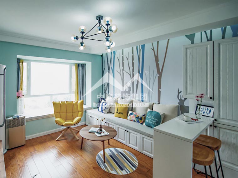 1、盡量使用清新一點(diǎn)的墻漆進(jìn)行補(bǔ)色,天藍(lán)、亮黃都是不錯的選擇。