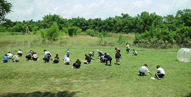 在草坪上捉雞和撿雞蛋的比賽,需要隊(duì)員之間相互合作,相互協(xié)調(diào),相互幫助,才可以快速完成任務(wù),贏得比賽。同時(shí)也增強(qiáng)了各部門(mén)、同事與同事之間的密切溝通交流,有利于提高團(tuán)隊(duì)的凝聚力。