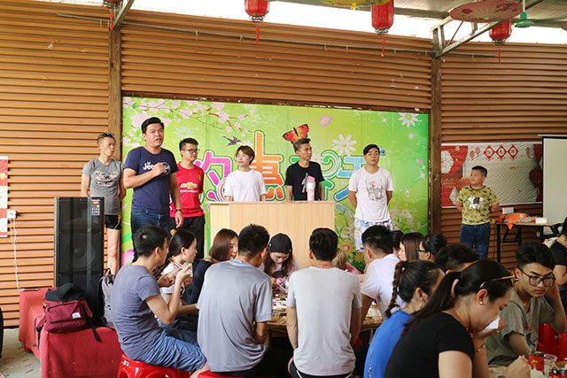 小憩時(shí)刻,與家人們共同享受美味佳肴。在品嘗美食時(shí)刻,主持人張經(jīng)理,邀請(qǐng)員工代表發(fā)言感想。