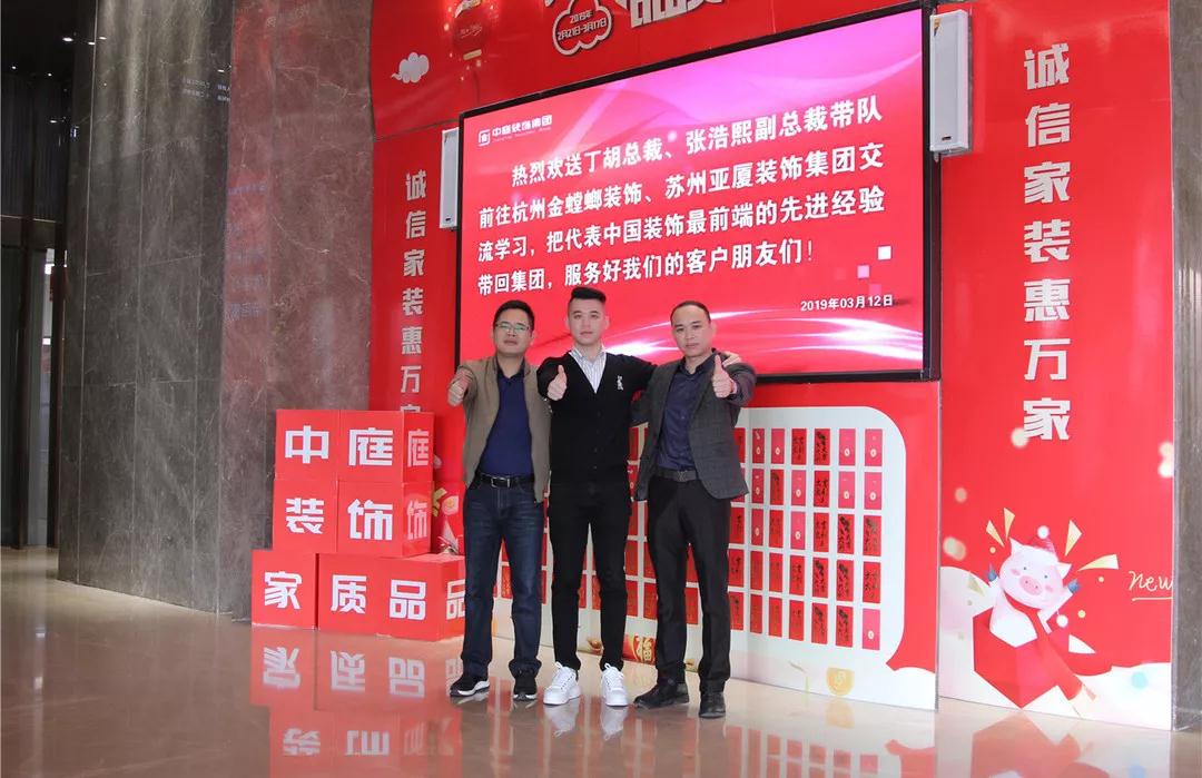 2019年3月12日,集團(tuán)總裁丁胡、副總裁張浩熙帶隊(duì)前往杭州金螳螂裝飾、蘇州亞廈裝飾集團(tuán)交流學(xué)習(xí)。