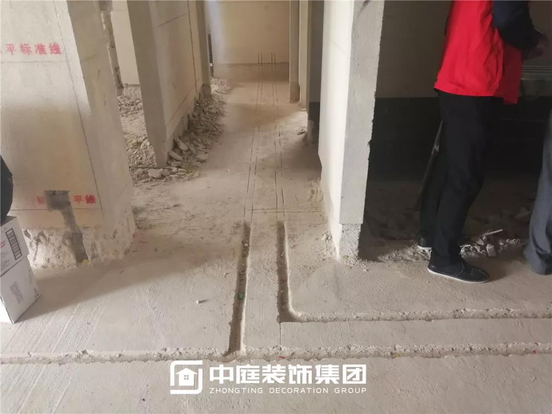 施工現(xiàn)場線管鋪設橫平豎直,按照集團施工規(guī)定使用鐵皮卡扣固定,管和管之間留有足夠縫隙,以便鋪設地磚時水泥砂漿進入管下,避免地磚后期出現(xiàn)空鼓。