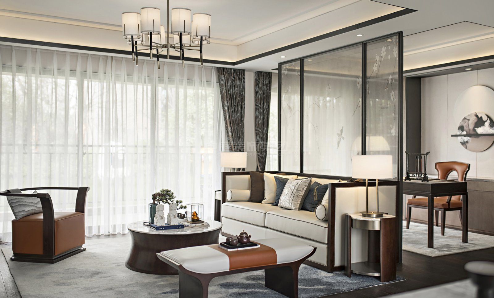 施工面積:120-150㎡| 設(shè)計風(fēng)格:新中式風(fēng)格