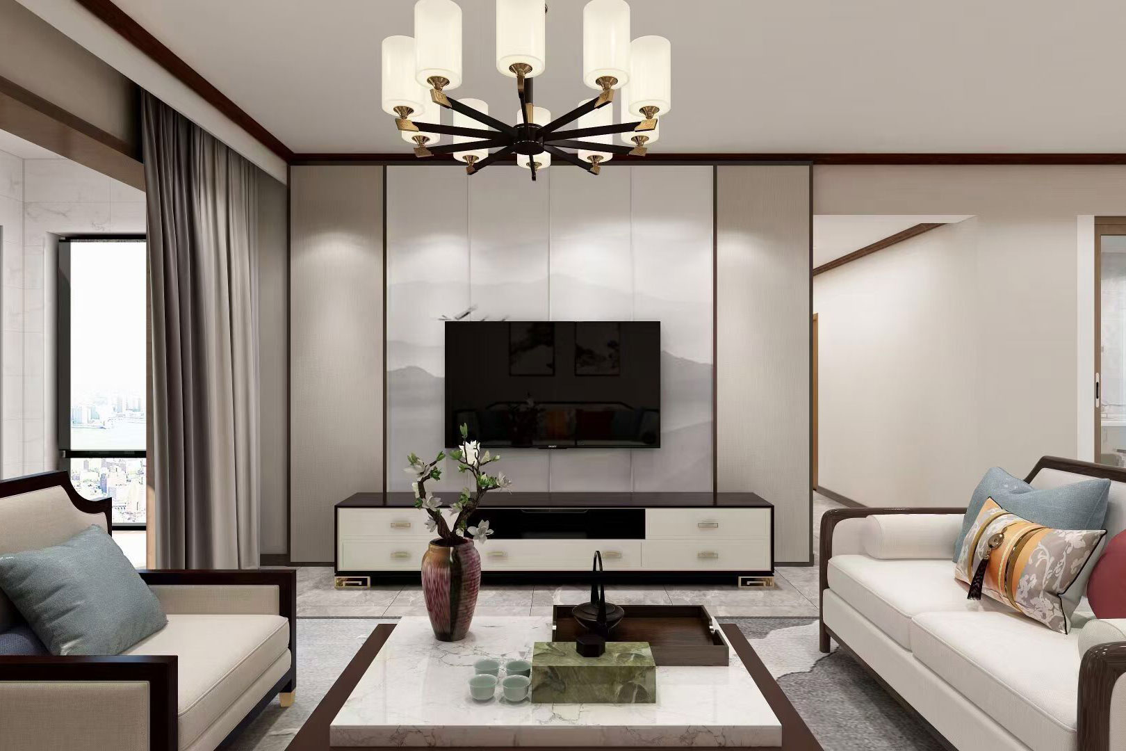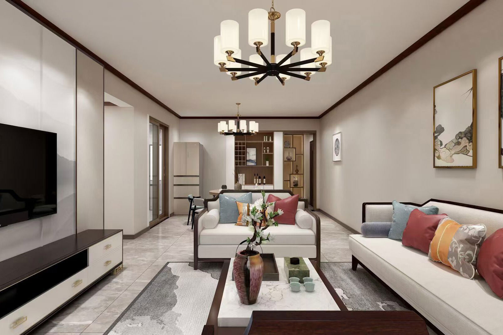 瀏覽量:562本案例總面積為148㎡,整體屬于新中式風(fēng)格,室內(nèi)空間講究主次分明、追求合理的空間布局和家具擺設(shè)。同時非常強(qiáng)調(diào)融入自然,并且注重人與空間的關(guān)系。提取傳統(tǒng)家居的精華元素和生活符號進(jìn)行合理的搭配、布局,使整體的家居設(shè)計中既有中式家居的傳統(tǒng)韻味,又能夠讓傳統(tǒng)元素更具筒練、大氣、時尚的特點。