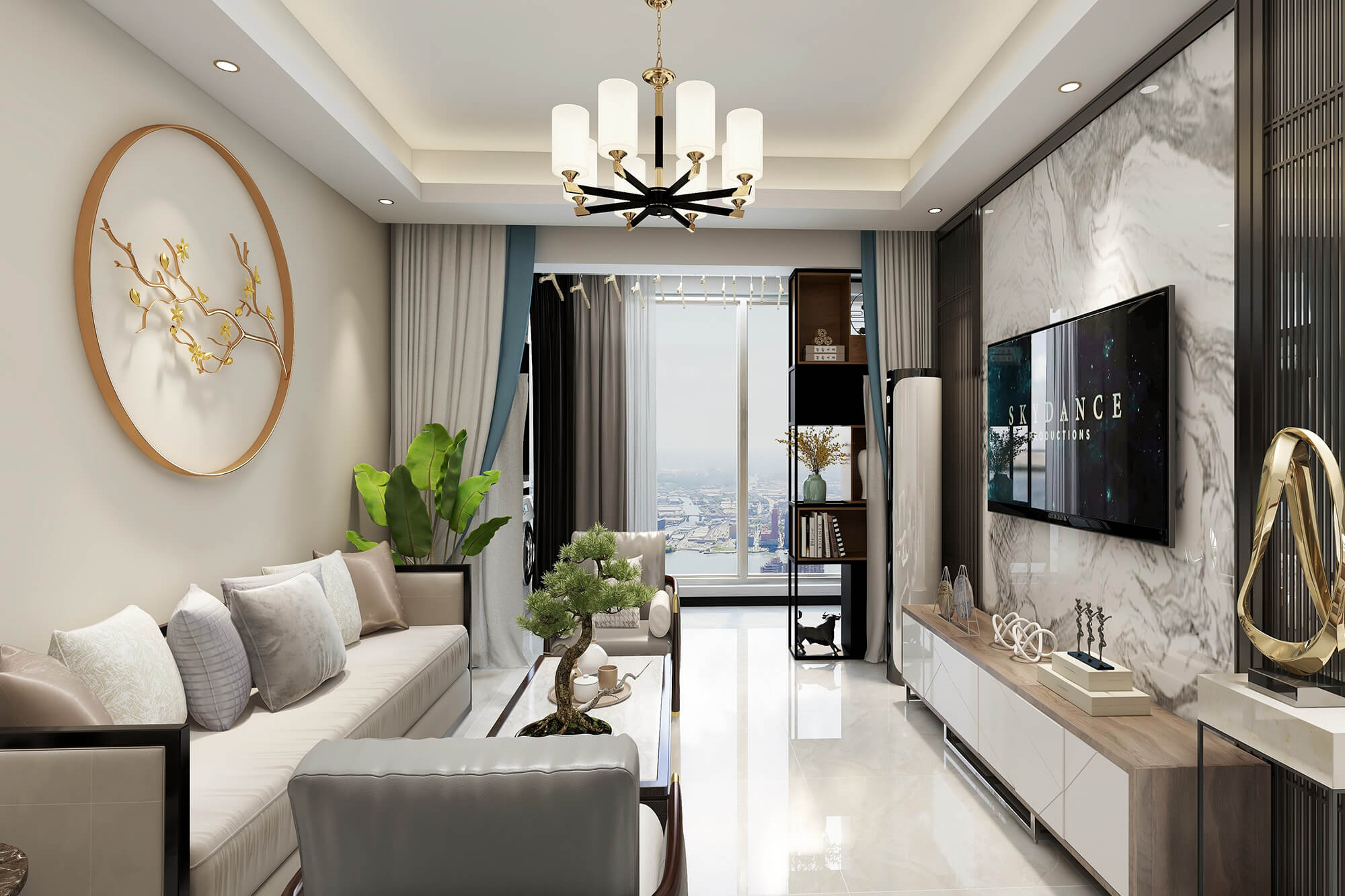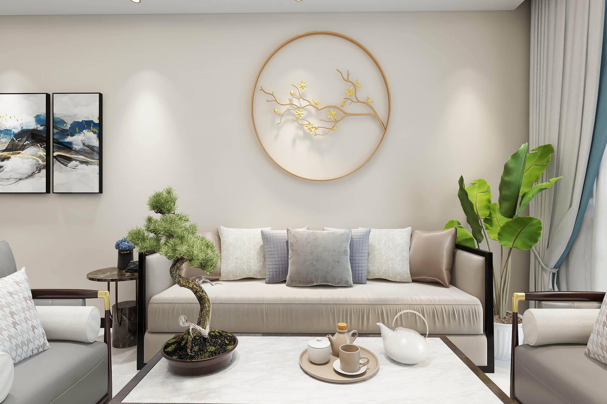 瀏覽量:461新中式風(fēng)格的室內(nèi)空間講究主次分陰、追求合理的空間布局和家具擺設(shè)。同時非常強(qiáng)調(diào)融入自然,并且注重人與空間的關(guān)系。在這種追求人與自然融合的理念下,外部環(huán)境也可視為室內(nèi)空間的延伸,讓人在家居空間也能感受到室外的自然景致。此外,室內(nèi)空間常在一些細(xì)節(jié)上勾勒出禪宗的意境,完美地將中國人內(nèi)在的哲學(xué)觀念展露于室內(nèi)裝飾中。側(cè)重于表達(dá)傳統(tǒng)空間的意識形態(tài),同時對文化習(xí)俗和美學(xué)意識進(jìn)行了更深層次的考量。因此,在空間設(shè)計中會更注重傳統(tǒng)文化的傳承,以達(dá)到提升家居空間品質(zhì)的目的。此外,通過提取傳統(tǒng)家居的精華元素和生活符號進(jìn)行合理的搭配、布局,使整體的家居設(shè)計中既有中式家居的傳統(tǒng)韻味,又能夠讓傳統(tǒng)元素更具筒練、大氣、時尚的特點(diǎn),使現(xiàn)代家居更富有中華文化韻味。