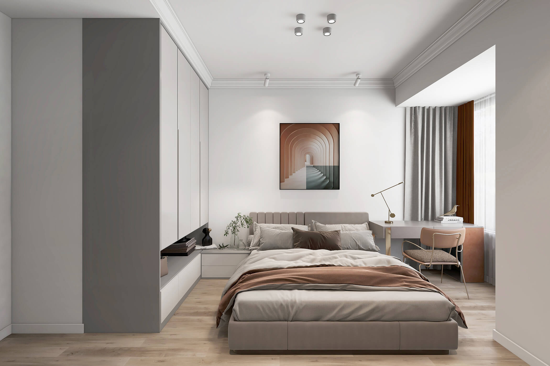 瀏覽量:695本案戶型為:4房2廳2衛(wèi),總面積143㎡。奢在格調(diào)上,雅在細(xì)節(jié)里,本案以光影與質(zhì)感的結(jié)合,通過(guò)一些軟裝元素來(lái)凸顯精致,構(gòu)建優(yōu)雅有格調(diào)的居住環(huán)境。