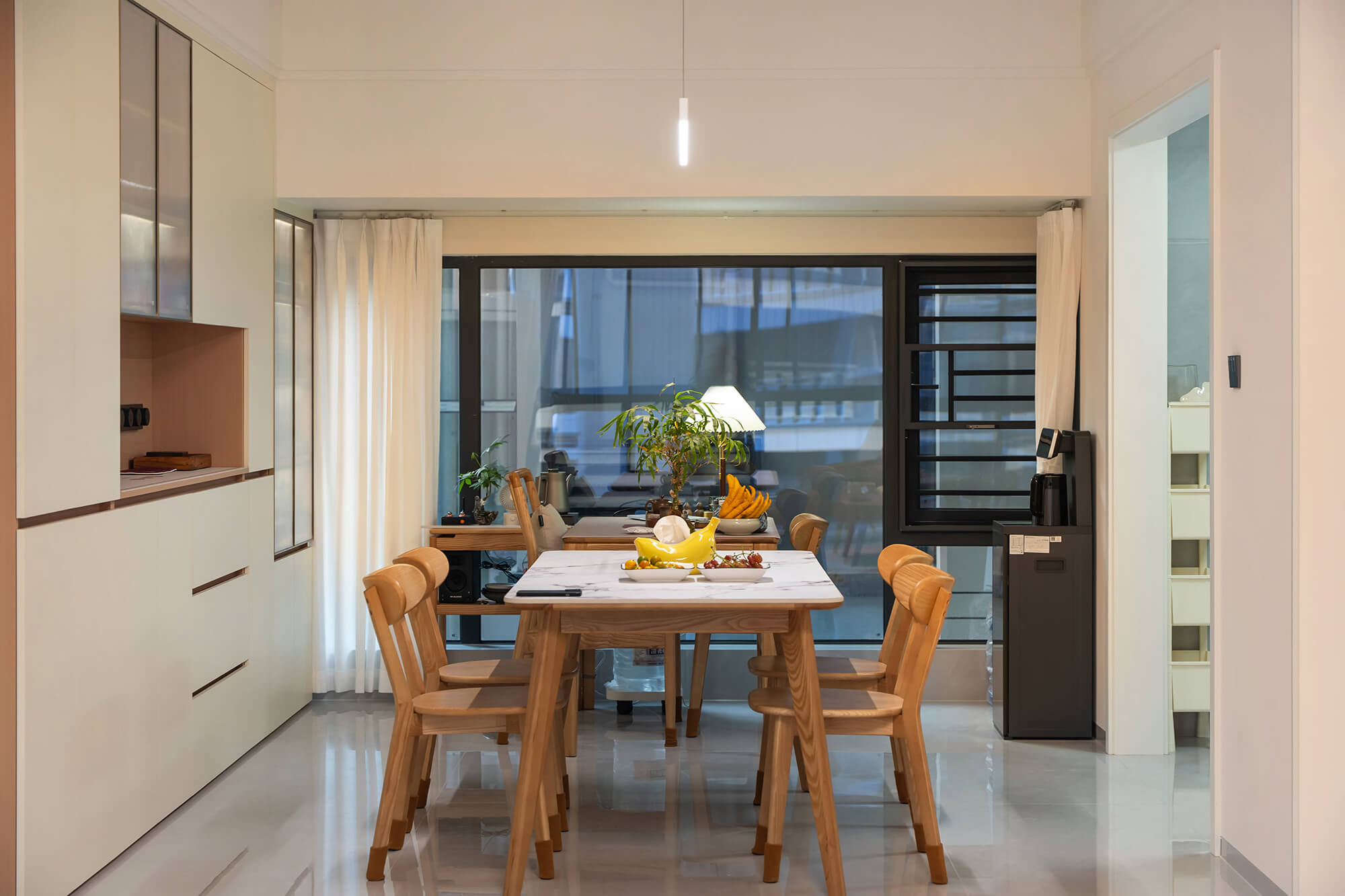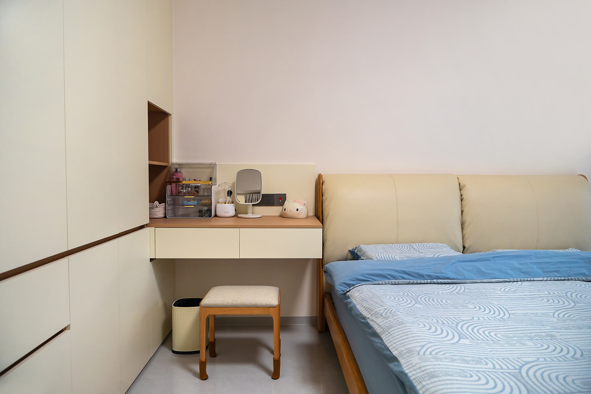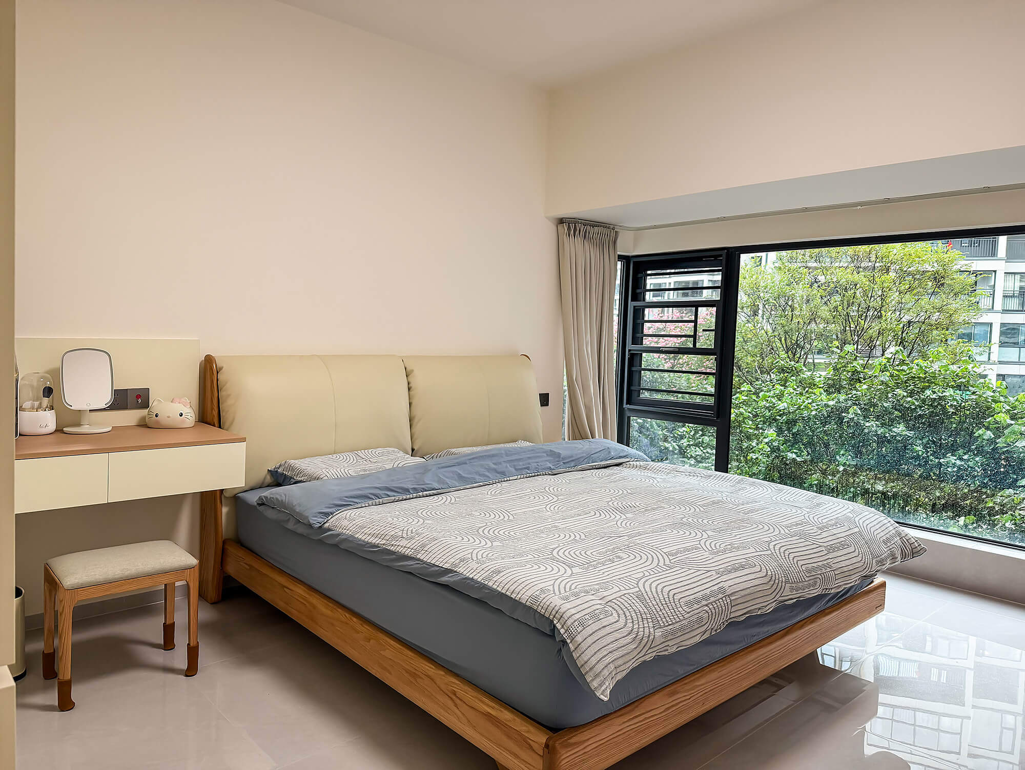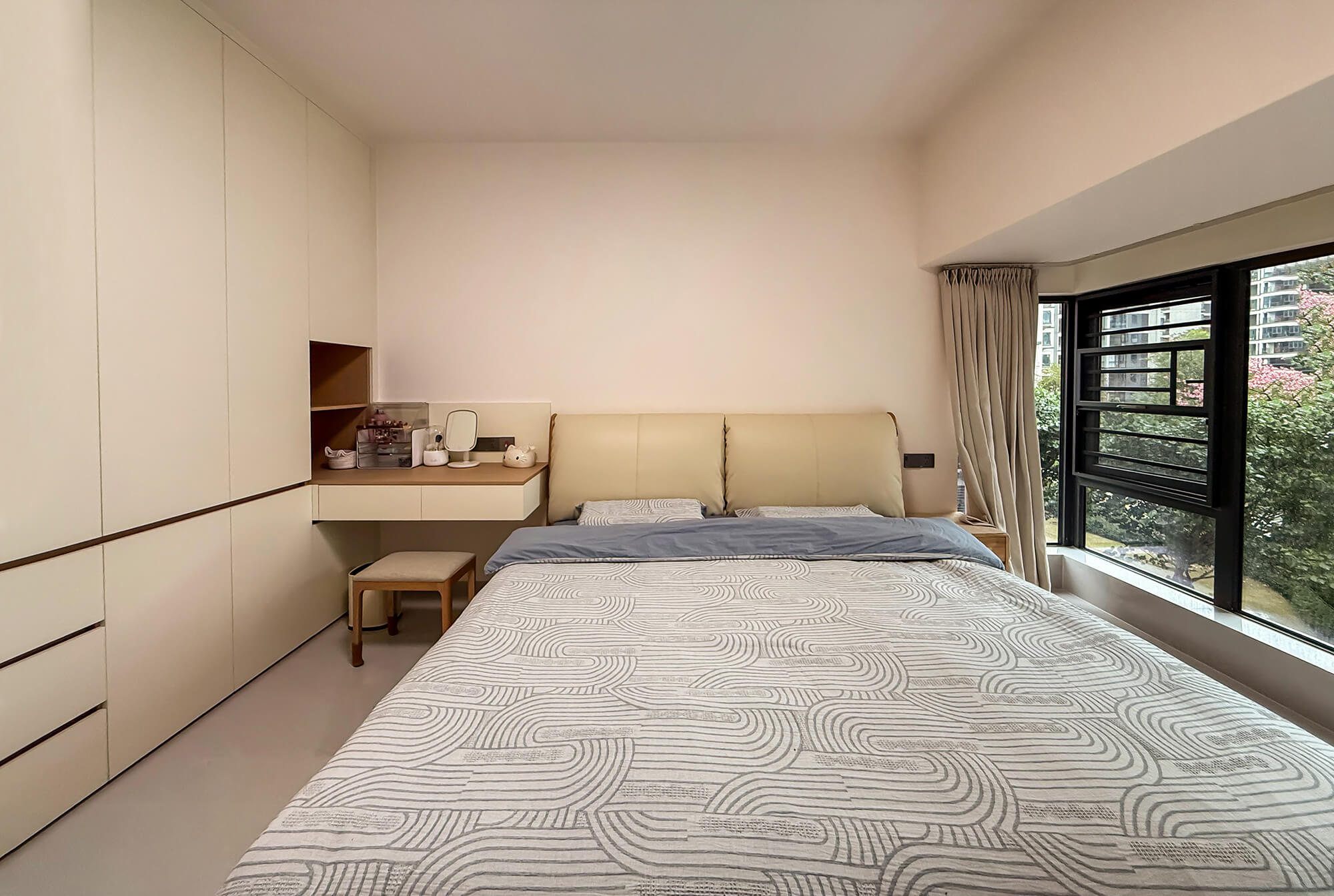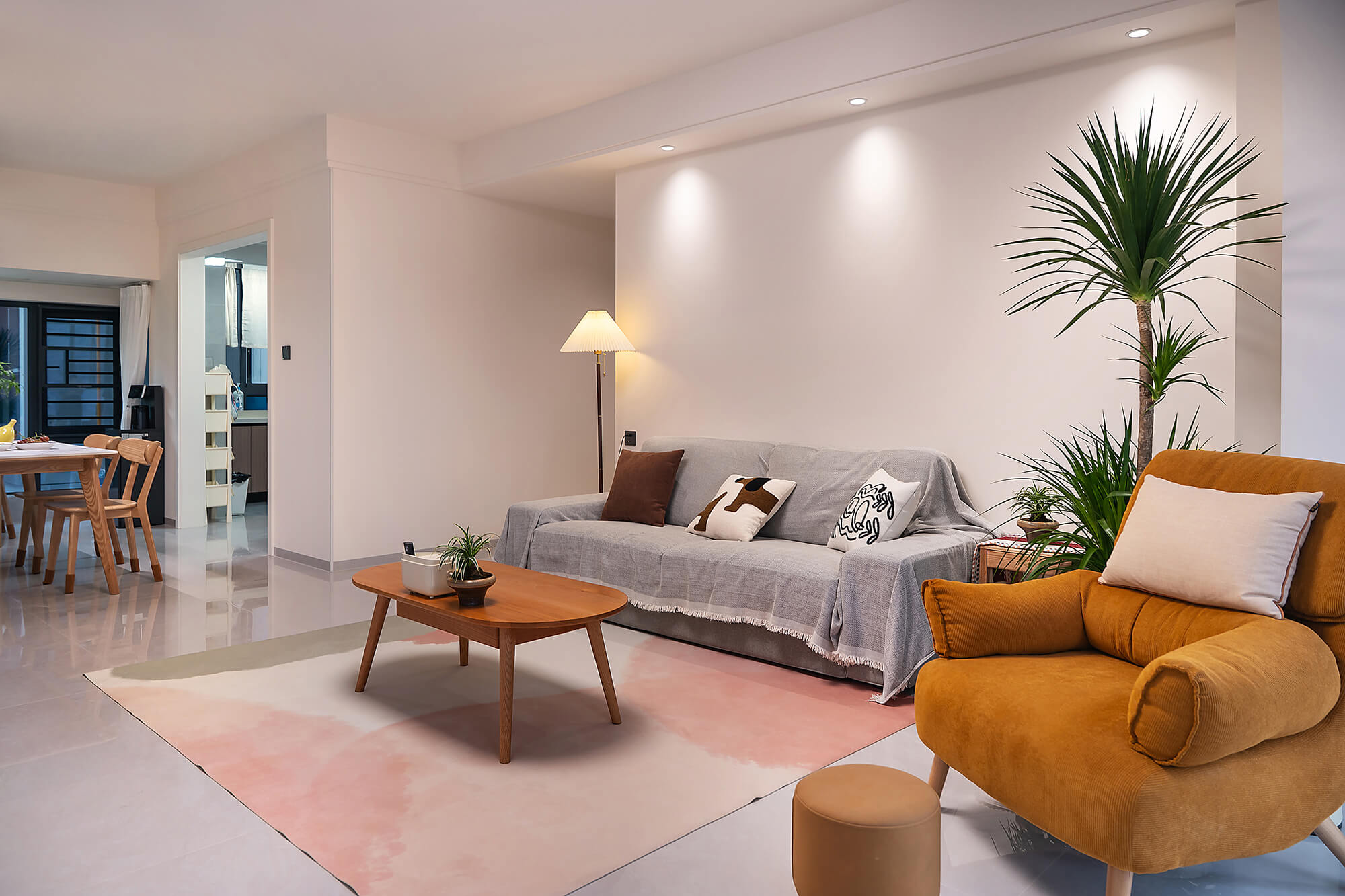 平衡 “實(shí)用與美觀”,簡(jiǎn)化復(fù)雜造型,以簡(jiǎn)潔線條、規(guī)整布局為核心,色彩上多采用中性色搭配少量亮色點(diǎn)綴。注重空間利用率,家具選型簡(jiǎn)約大氣且兼顧功能性,裝飾元素少而精(如簡(jiǎn)約掛畫(huà)、綠植),營(yíng)造清爽、通透、適配日常居住的舒適空間。