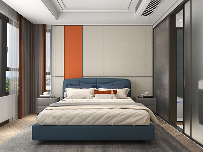 整個空間變得更加寬闊通透,視野也有一定的拓展,藍色系的空間在整個空間當中變得更加大氣,再加上灰綠色的布藝沙發(fā),灰色的茶幾在色調(diào)上有的用的沖擊性豐富了整個空間當中的層次。