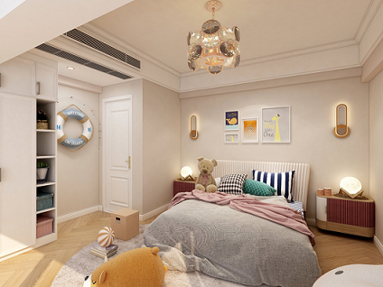 整個(gè)空間主要在軟裝搭配上做文章,運(yùn)用比較童趣的掛畫,掛件等裝飾,讓空間生動(dòng)活潑起來。